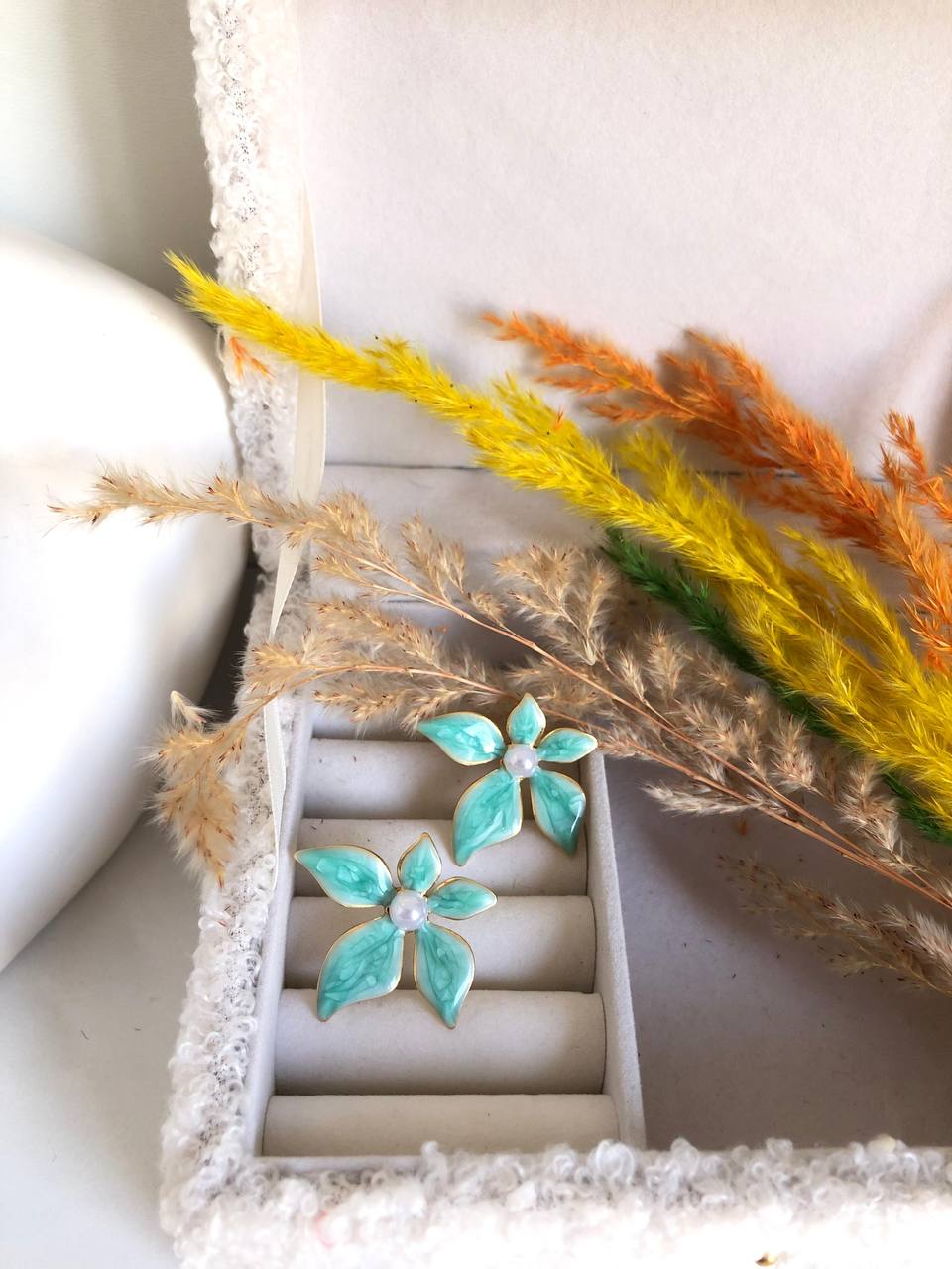 Chaque détail met en valeur la douceur des courbes et la luminosité de la perle centrale, offrant un équilibre parfait entre sophistication et originalité. Ces boucles d’oreilles sont idéales pour le printemps, les événements spéciaux, les mariages ou pour sublimer une tenue chic au quotidien.