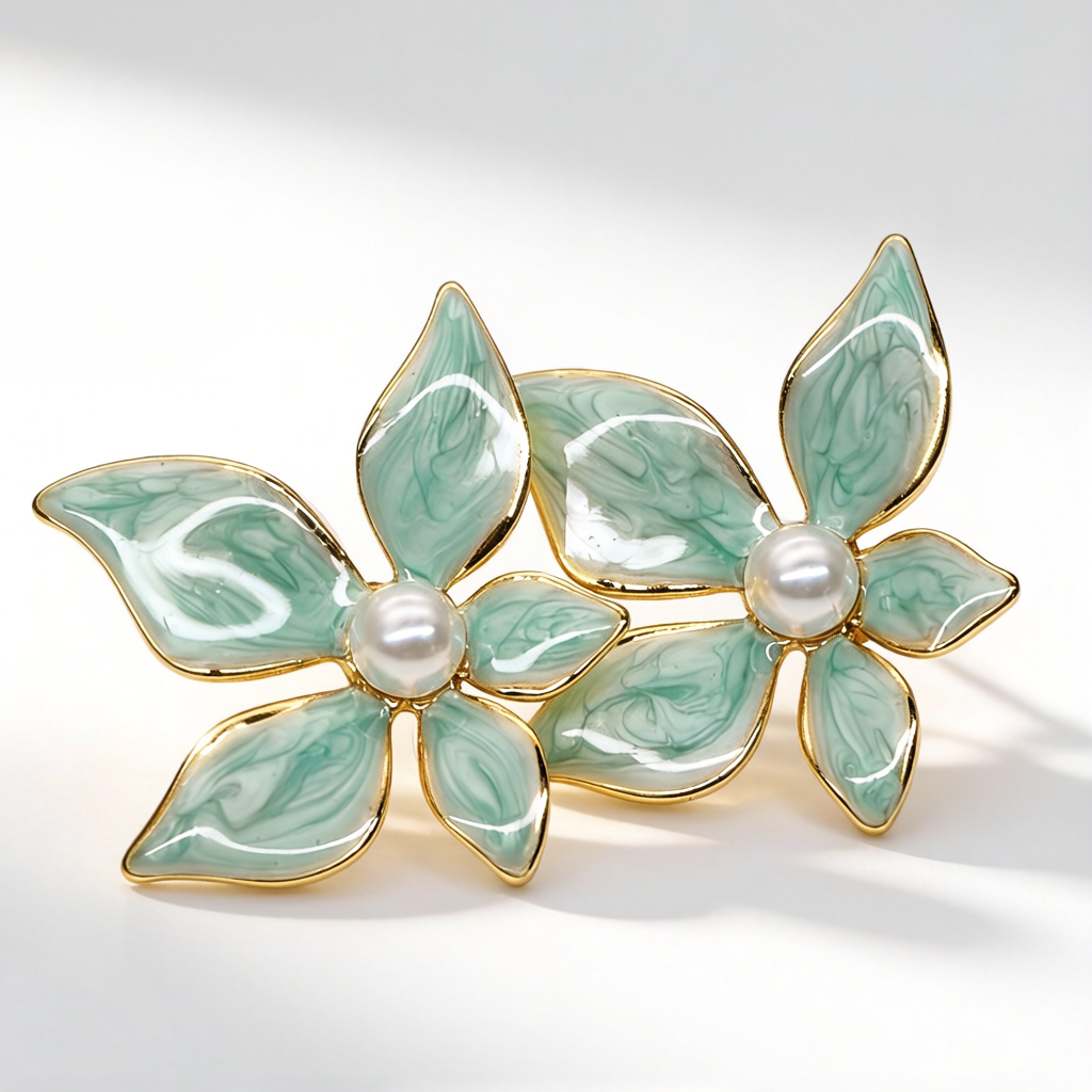 Apportez une touche de fraîcheur et d’élégance à votre style avec ces boucles d’oreilles fleurs vert marbré sublimées par une perle centrale raffinée. Leur design floral délicat, associé à des pétales effet marbre vert pastel et à une finition dorée brillante, crée un bijou à la fois romantique et moderne.