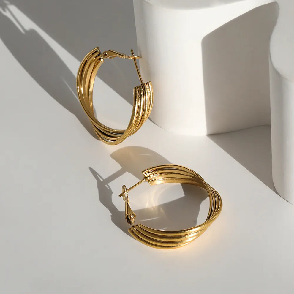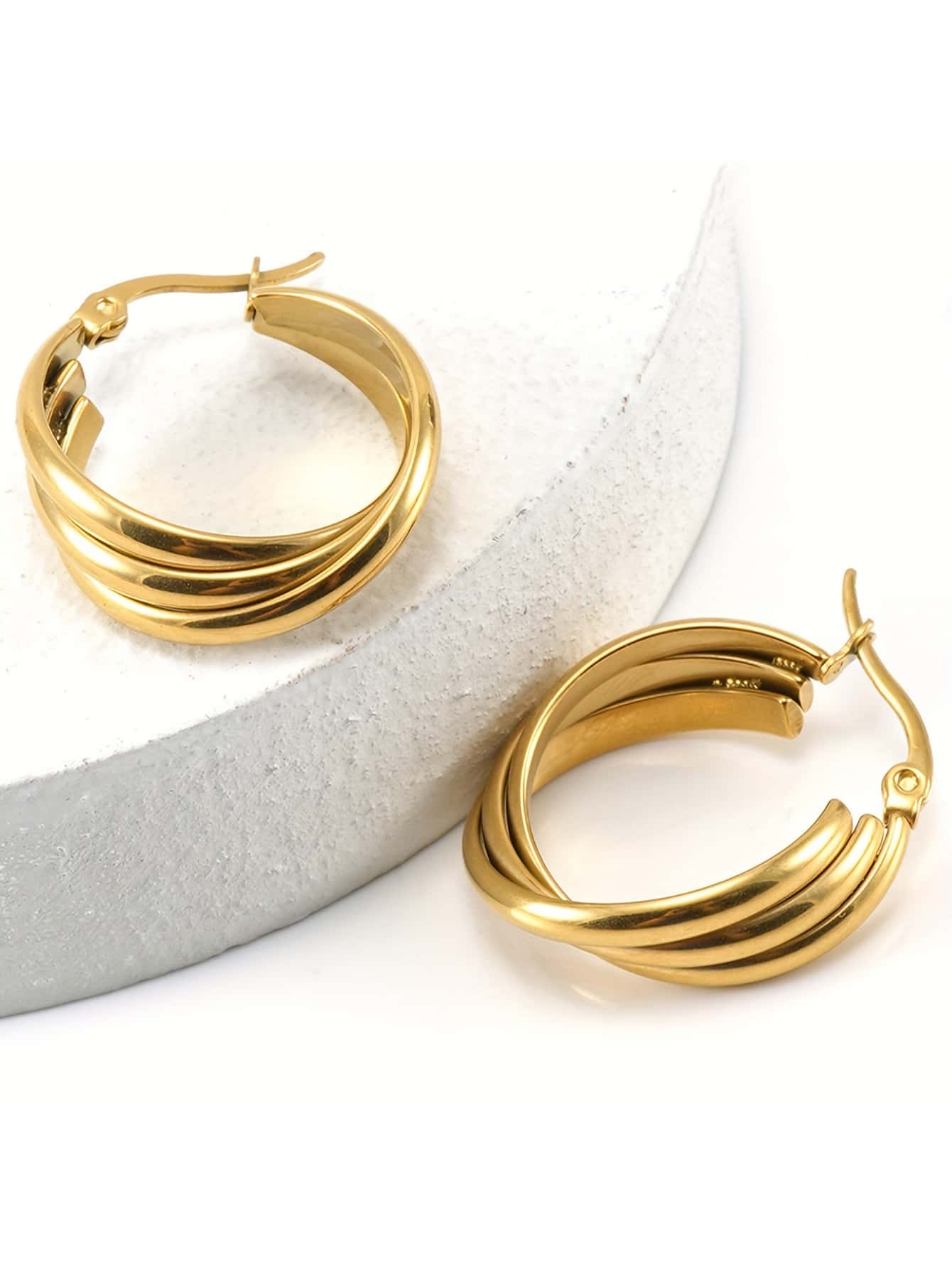 Craquez pour l’élégance intemporelle des créoles torsadées « Épure Chic », conçues en acier inoxydable doré. Leur forme fluide et leur finition brillante apportent une touche de raffinement à toutes vos tenues.