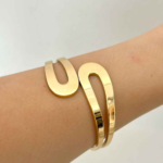 Ajoutez une touche contemporaine à votre style avec ce bracelet manchette doré, doté d’un design fluide et d’un fermoir sécurisé.